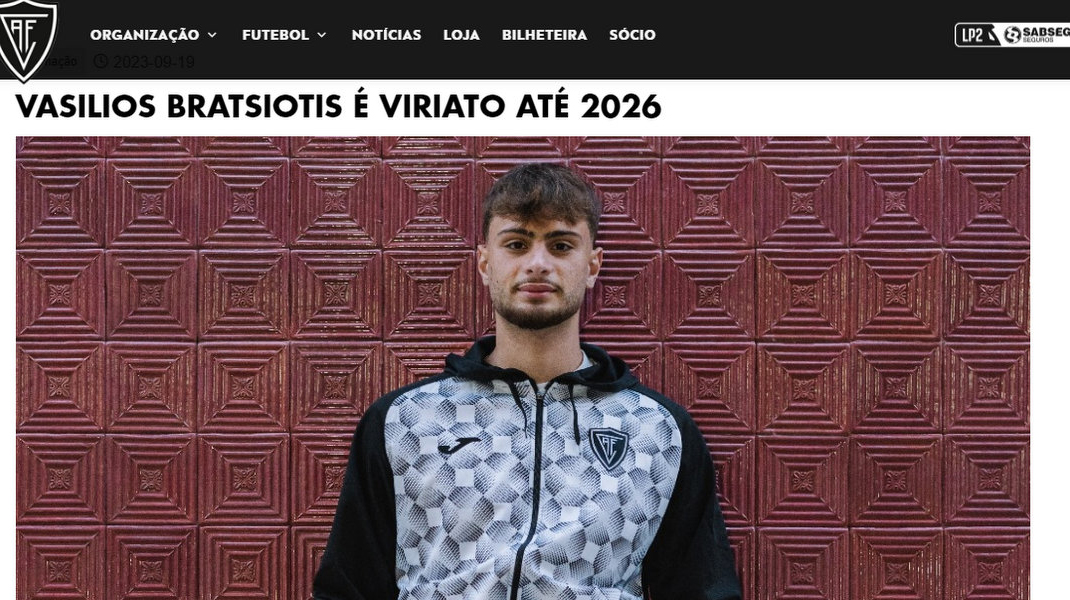 Ο Χαλκιδέος Βασίλης Μπρατσιώτης που ξεκίνησε από τις Ακαδημίες του Ερμήλιου, υπέγραψε τριετές επαγγελματικό συμβόλαιο στην Ακαντέμικα Ντε Βιζεού, την ομάδα της δεύτερης κατηγορίας Πορτογαλίας.