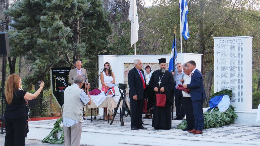 Ακολούθησαν χαιρετισμοί, η κεντρική ομιλία από τον εκπρόσωπο της Κυπριακής Πρεσβείας κ. Ταλιαδώρο, απονομές αναμνηστικών, χοροί από τον χορευτικό σύλλογο Μαντουδίου "Μάκιστος" και η εκδήλωση έκλεισε με μικρή δεξίωση, που παρέθεσε ο Δήμος στο χώρο του Μνημείου.