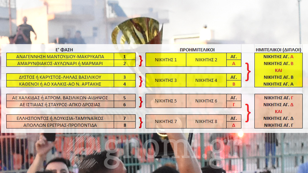 ΚΥΠΕΛΛΟ ΕΥΒΟΙΑΣ: Η κλήρωση μέχρι τον τελικό. Ολες οι διασταυρώσεις σε πίνακα