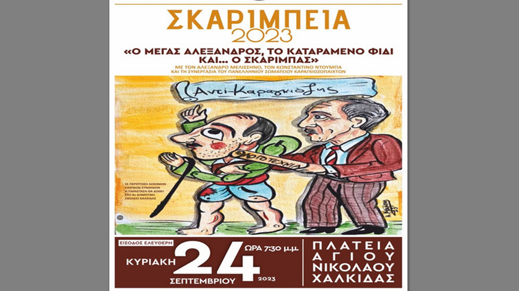 Η Καραγκιοζοπαράσταση προσφέρεται στα πλαίσια των πολιτιστικών εκδηλώσεων «ΣΚΑΡΙΜΠΕΙΑ 2023 στη Χαλκίδα» που οργανώνει ο Σύλλογος Φίλων Γ. Σκαρίμπα και το Πολιτιστικό Κέντρο – Αρχείο Γ. Σκαρίμπα, με την υποστήριξη του Δήμου Χαλκιδέων μέσω του ΔΟΑΠΠΕΧ.