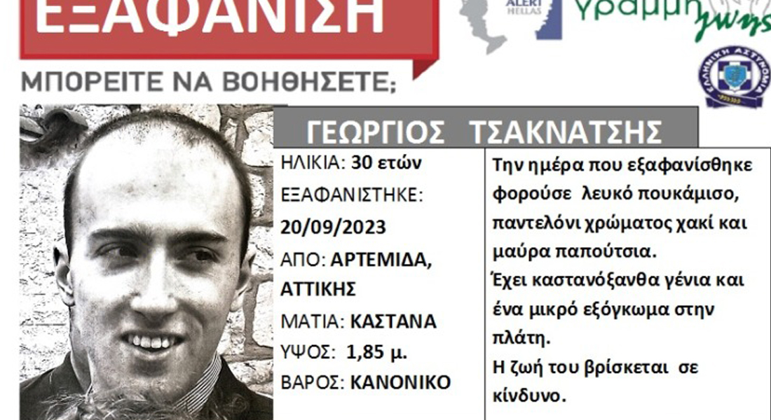 Αγωνία για τον 30χρονο Γιώργο Τσακνατσή που έχει εξαφανιστεί