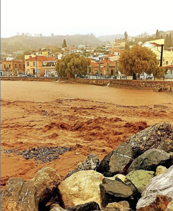 Ο όγκος της λάσπης που έχει κατέβει από τα βουνά είναι τεράστιος και έχει καταλήξει μέχρι και στη θάλασσα, η οποία από γαλάζια έχει γίνει κόκκινη, αφού η ποσότητα της λάσπη που έπεσε στο νερό είναι τεράστια.