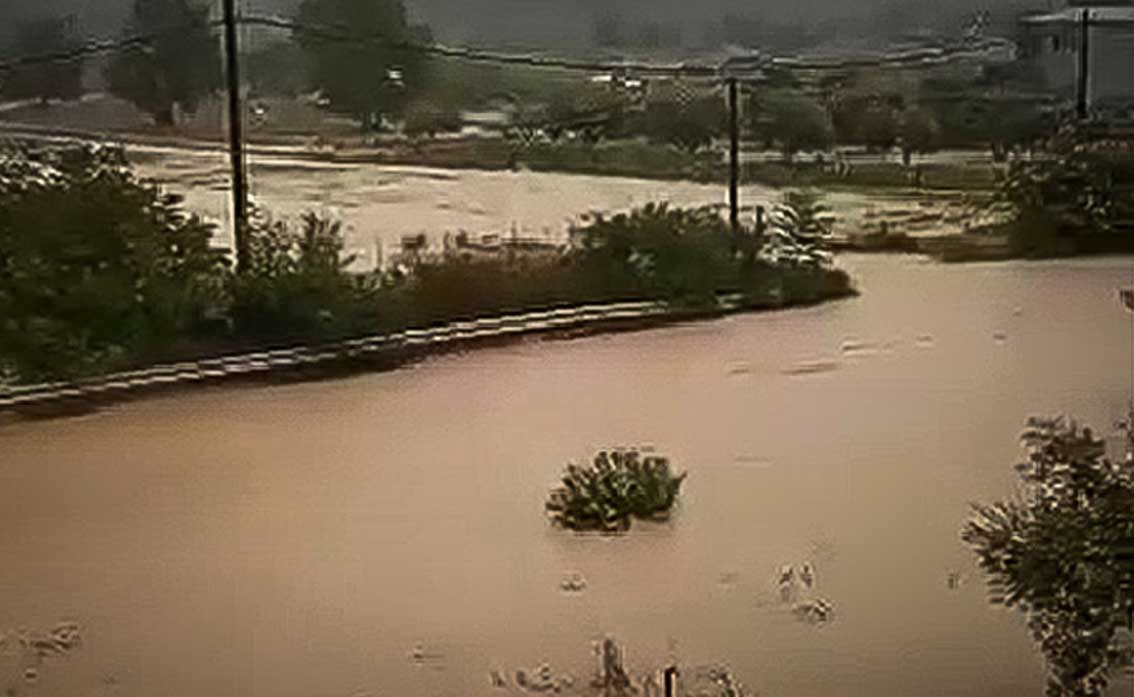 Δρόμοι και ιδιοκτησίες πλημμύρισαν και στα Πολιτικά (δείτε εδώ), οπου τεράστιοι όγκοι νερού κατεβαίνουν από το ποτάμι του χωριού.