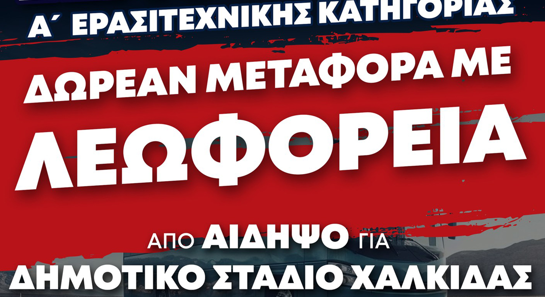 Η ομάδα της βόρειας Εύβοιας θέλει τον κόσμο στο πλευρό της και γι' αυτόν τον λόγο ανακοίνωσε ότι θα βάλει δωρεάν λεωφορεία για τη μετακίνηση των φιλάθλων της ομάδας στην πρωτεύουσα του νομού.