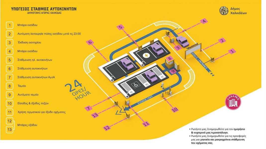 Σε 24ωρη λειτουργία τέθηκε, από τον Δήμο Χαλκιδέων, ο υπόγειος σταθμός αυτοκινήτων στην πλατεία Εμπόρων, στη Δημοτική Αγορά Χαλκίδας, και πλέον πολίτες και επισκέπτες μπορούν να εξυπηρετούνται όλη την ημέρα και τη νύχτα.