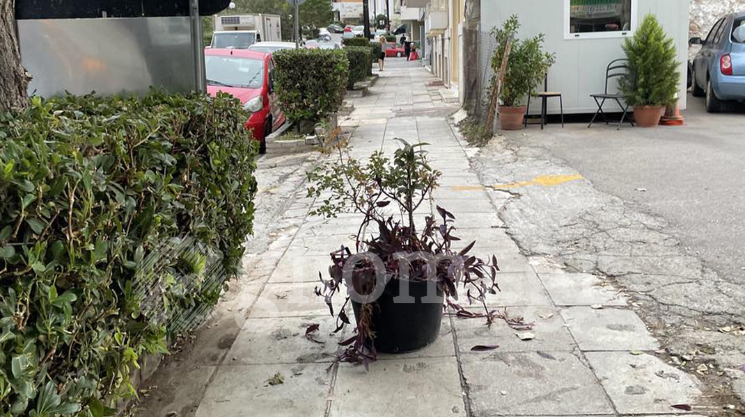 Μια σπασμένη γλάστρα «στόλιζε» το πρωί της Πέμπτης 26 Οκτωβρίου το πεζοδρόμιο της οδού Μιαούλη στη Χαλκίδα, μπροστά στο ιδιωτικό πάρκινγκ.