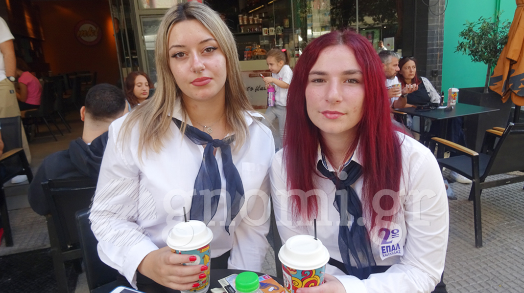 Η παρέλαση μόλις έχει τελειώσει και οι Χαλκιδέες μαθήτριες Νεφέλη Γαλάνη του Λυκείου Κανήθου και Αργυρώ Καραγκούνη του 2ου ΕΠΑΛ Χαλκίδας κάθισαν να απολαύσουν το καφεδάκι τους.