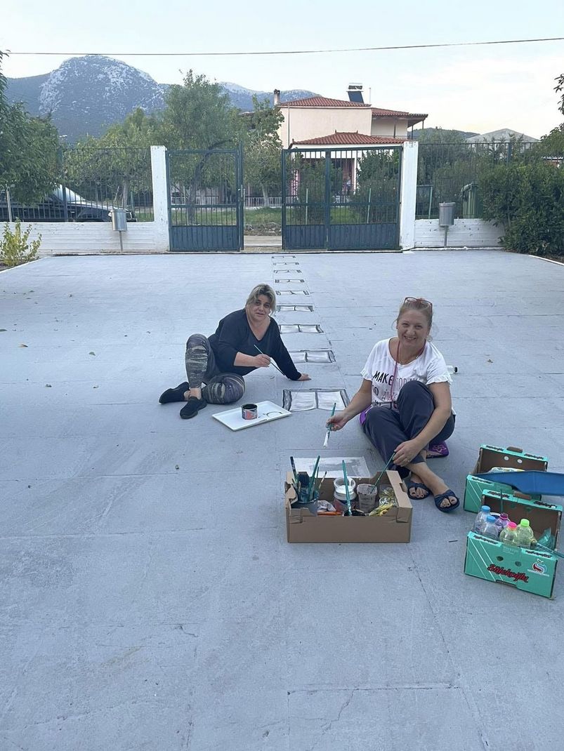 Η νέα πρόεδρος του Συλλόγου Μαίρη Κισκάκη, με την συνδρομή κι άλλων μελών και του Δήμου (που χορήγησε τα χρώματα) ζωγράφισε το μονοπάτι της γνώσης στο σχολείο.