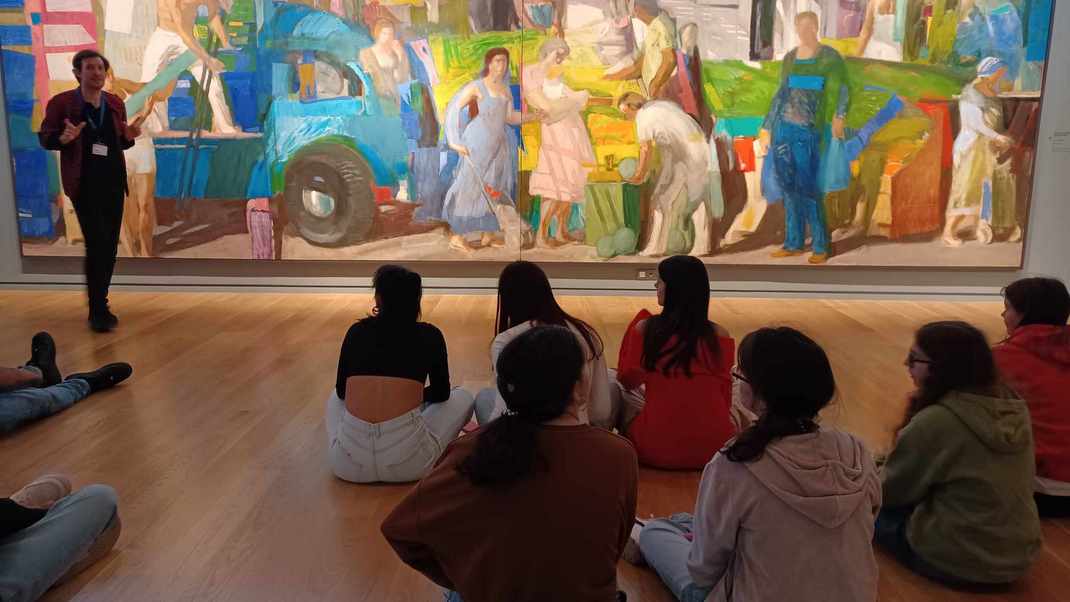 Συγκεκριμένα τα τμήματα Α1 και Α2 του σχολείου, με συνοδούς τους εκπαιδευτικούς Παπαδοπούλου Παγώνα, Αλεξάνδρα Ανδρικοπούλου και Τσακό Παναγιώτη, είχαν τη χαρά να ξεναγηθούν στον χώρο και να θαυμάσουν αυθεντικά έργα μεγάλων ζωγράφων της μοντέρνας και σύγχρονης τέχνης.