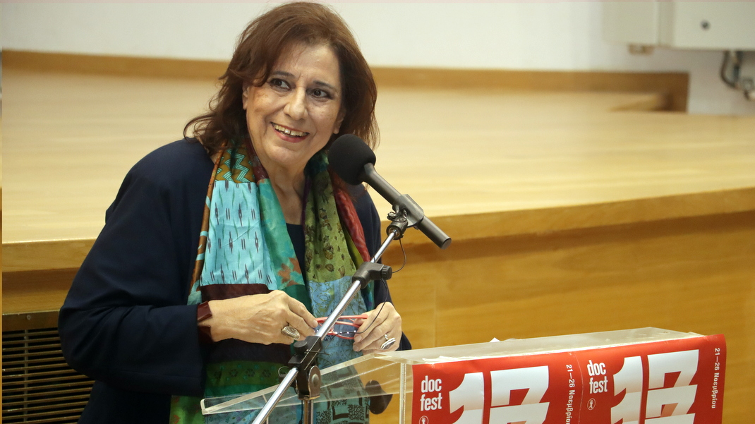 Η Μαρία Φαραντούρη εξέφρασε τη χαρά της που παραβρέθηκε σ’ ένα χώρο γεμάτο νέους δημιουργούς και συνεχάρη το Φεστιβάλ που προβάλλει την εγχώρια παραγωγή ντοκιμαντέρ.