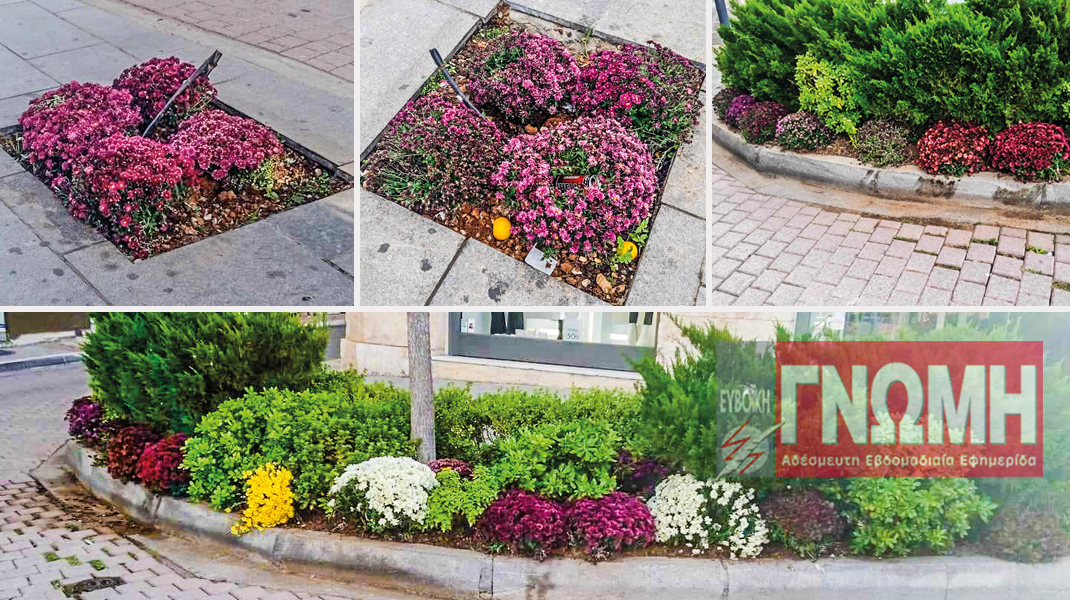 Η εικόνα στο παρτέρι της διασταύρωσης των οδών Συγγρού και Μπαλαλαίων, όταν μπαίνουν τα χρυσάνθεμα, είναι ειδυλλιακή (φωτό 3). Λίγες μέρες μετά, όμως, έχουν καταστραφεί όλα (φωτό 4).
