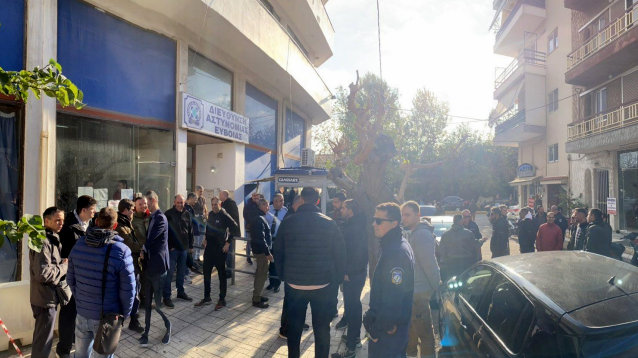 ΧΑΛΚΙΔΑ: Παράσταση διαμαρτυρίας αστυνομικών μπροστά στην Διεύθυνση Αστυνομίας Εύβοιας