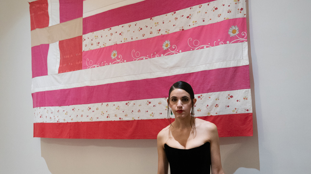 Η καλλιτέχνιδα, με αυτό το έργο, επιχειρεί να ευαισθητοποίησει το κοινό μέσω της χειροποίητης σημαίας της που υφάνθηκε από σεντόνια που της δώρισαν κακοποιημένες γυναίκες. «Το έργο τέχνης δημιουργείται από σεντόνια, δωρεά γυναικών που ζουν στην Ελλάδα. Αυτές οι γυναίκες έχουν φαινομενικά λίγα κοινά πράγματα, αλλά όλες έχουν ξαπλώσει σε αυτά τα σεντόνια απελπισμένες και φοβισμένες» αναφέρει η περιγραφή της έκθεσης.