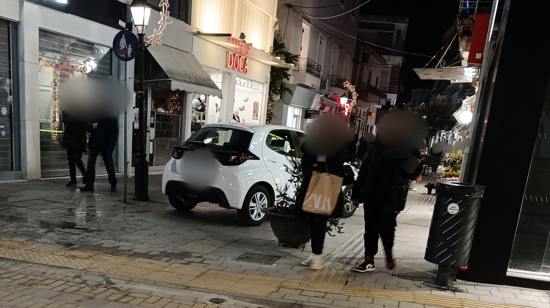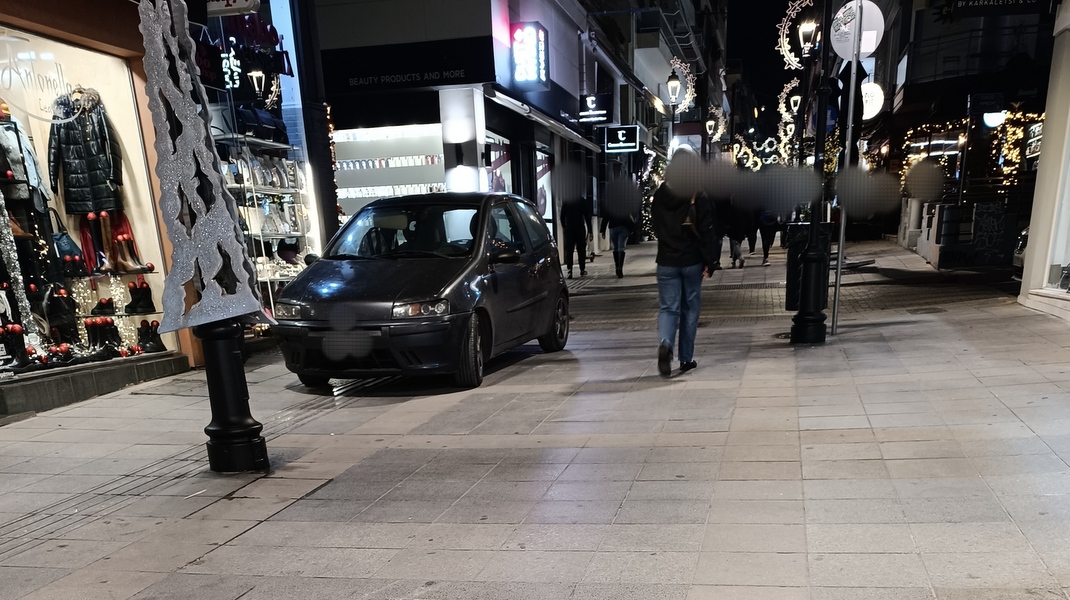 Ωστόσο, το γεγονός ότι πρόκειται για πεζόδρομο και ότι κυκλοφορεί κόσμος δεν εμπόδισε αρκετούς οδηγούς (όχι έναν και δύο) να παρκάρουν παράνομα και να μετατρέψουν τον δρόμο σε ...πάρκινγκ.