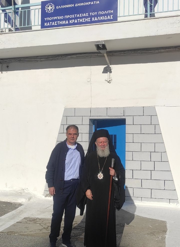 Εκεί, συνοδευόμενος, από τους υπευθύνους Εφημερίους Αρχιμανδρίτη Ιωάννη Θεοδωρακόπουλο και π. Χρυσοβαλάντη Φιλντίση, συνάντησε τους κρατουμένους, με τους οποίους αντάλλαξε ευχές και τους προσέφερε χριστουγεννιάτικες ευλογίες.