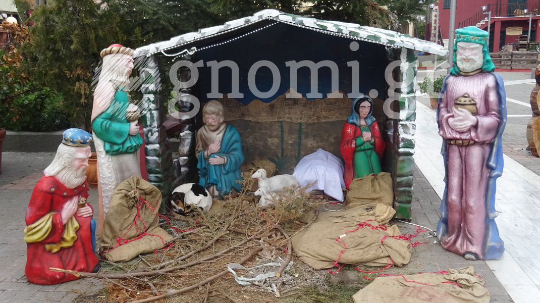 Ενα αδέσποτο σκυλάκι βρήκε θαλπωρή στη φάτνη της κεντρικής πλατείας που έχει στηθεί για τις μέρες των Χριστουγέννων...