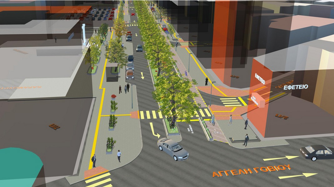 - Αποκλειστική λωρίδα ποδηλάτου και στάσεις ποδηλάτου, στις δύο πλευρές της Λεωφόρου