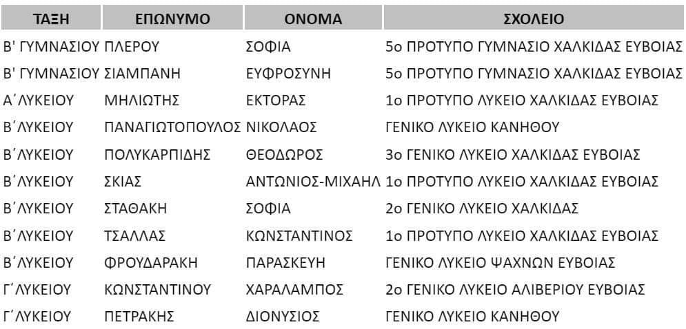 ΕΥΒΟΙΑ: Αυτοί είναι οι 12 μαθητές που διακρίθηκαν στον μαθηματικό διαγωνισμό Ευκλείδης