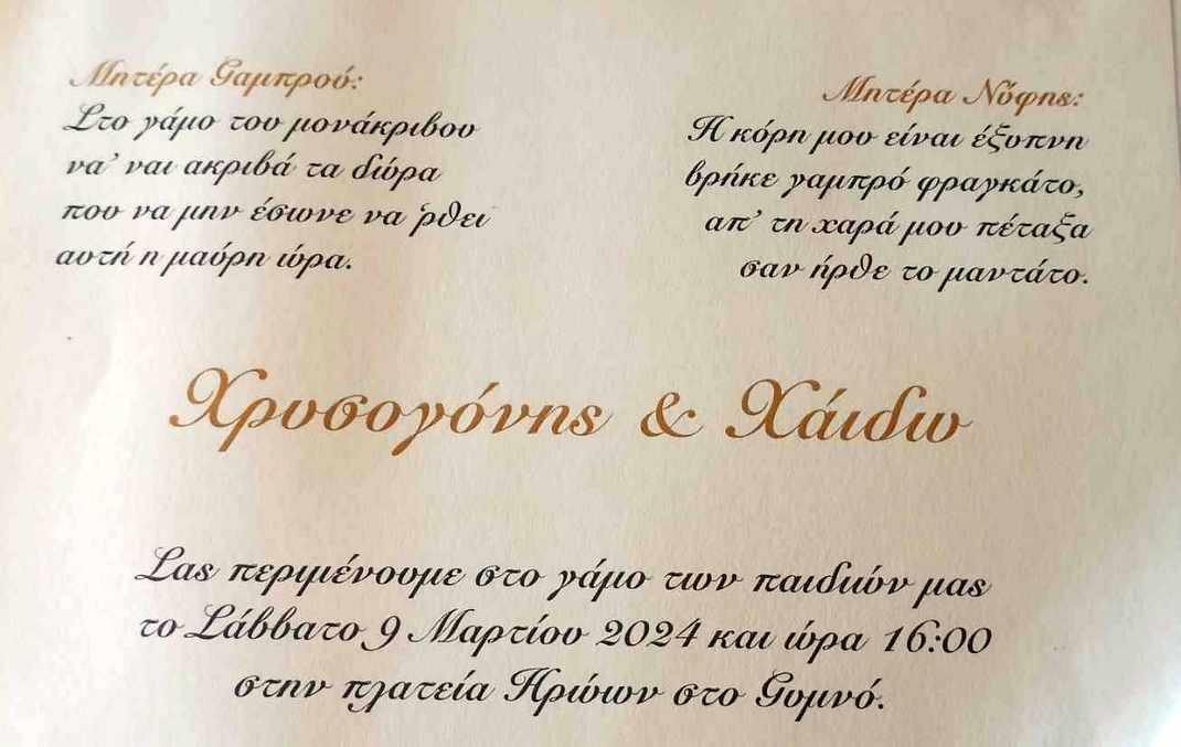 ΓΥΜΝΟ ΑΜΑΡΥΝΘΟΥ: Αποκριάτικος γάμος και το γέλιο ξεκινάει από το προσκλητήριο (φωτό)