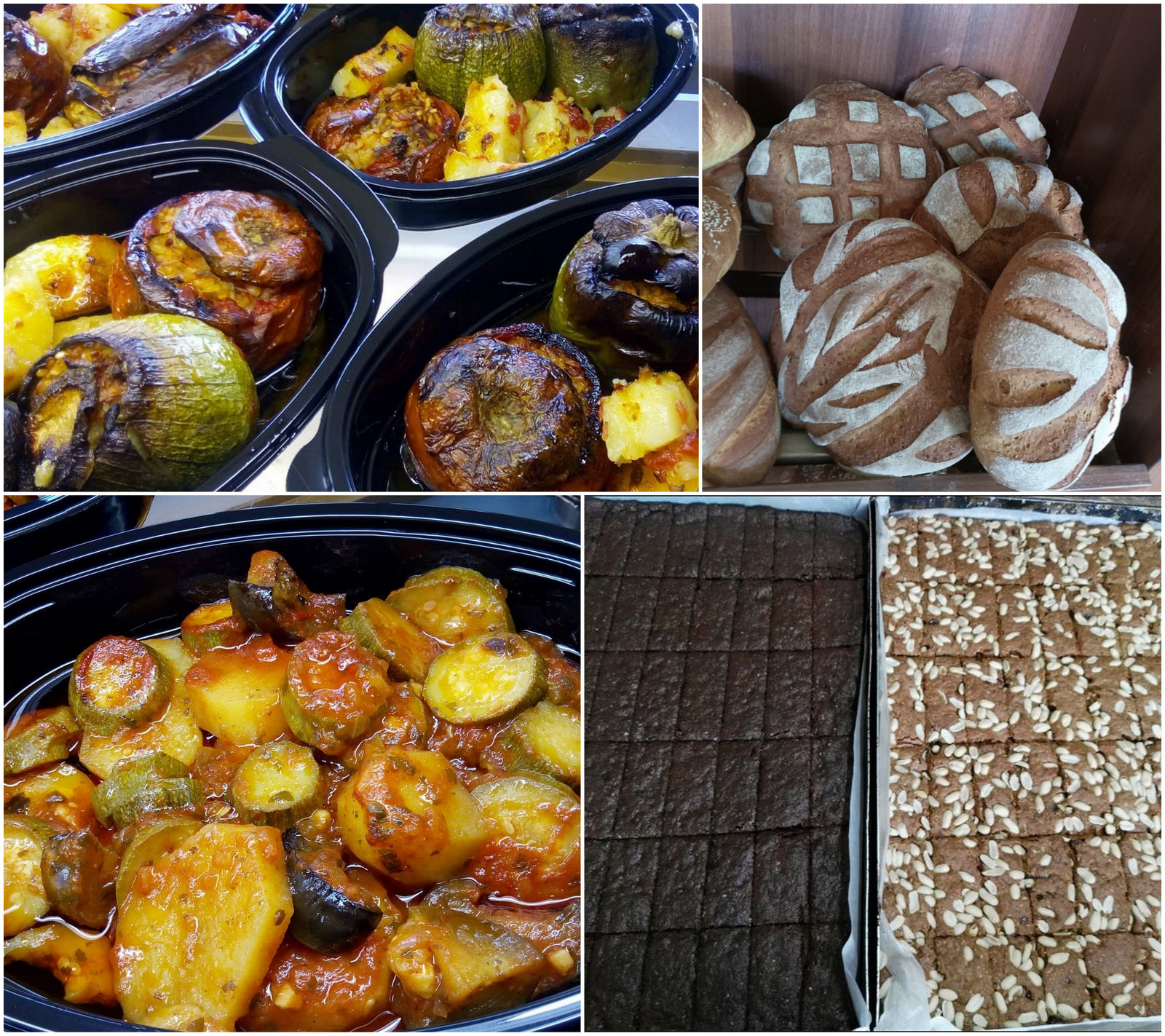 Δεκάδες επιλογές, όπως: Χωριάτικη σπανακόπιτα, πατατόπιτα, πολλά είδη σε κουλουράκια (και για διαβητικούς) μπάρες, αλλά και νηστίσιμα γλυκάκια κ.α.