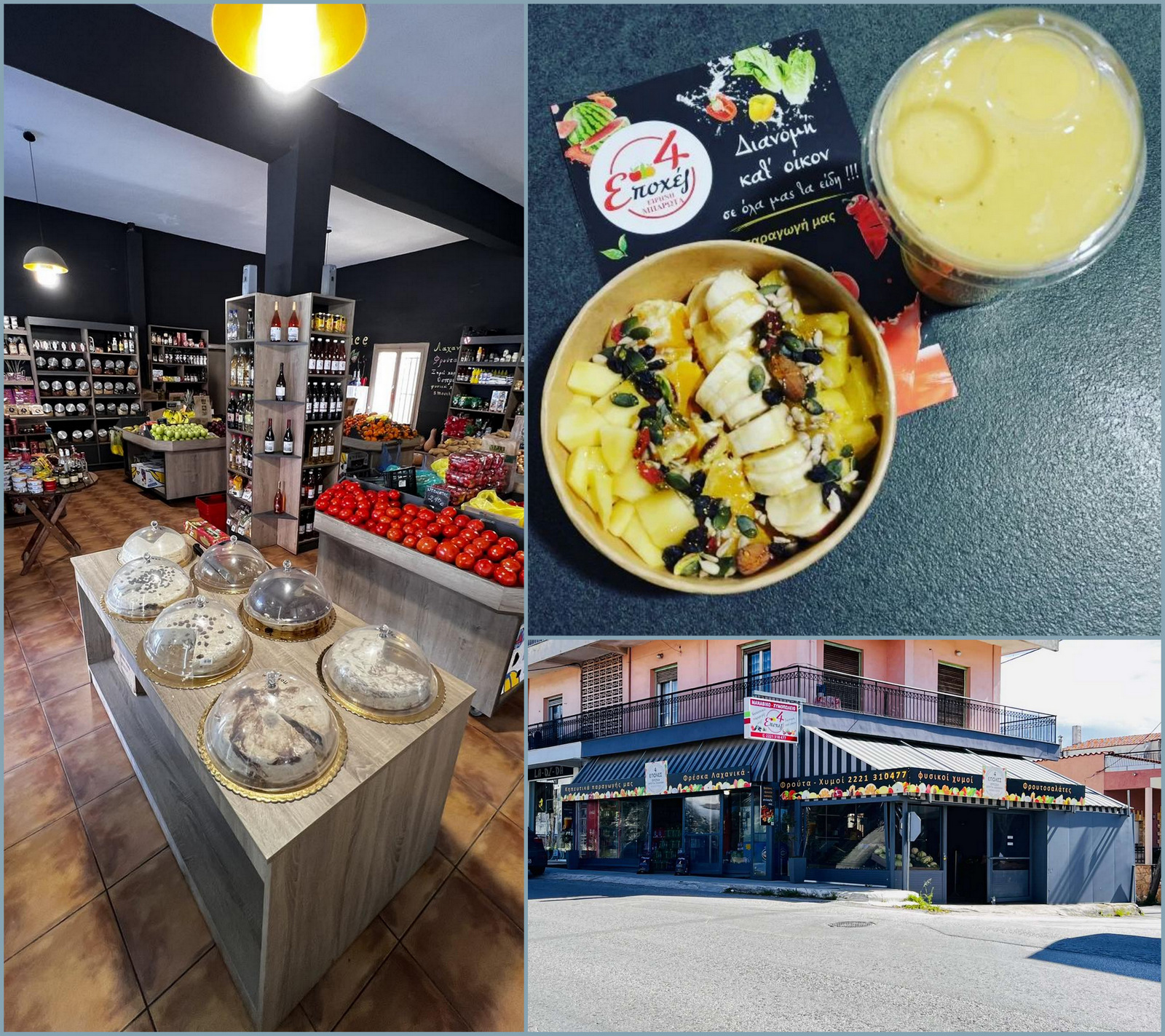 Το κατάστημα είναι γεμάτο από φρέσκα οπωροκηπευτικά είδη, γευστικό μακεδονικό χαλβά, ξηρούς καρπούς και άλλα είδη παντοπωλείου.