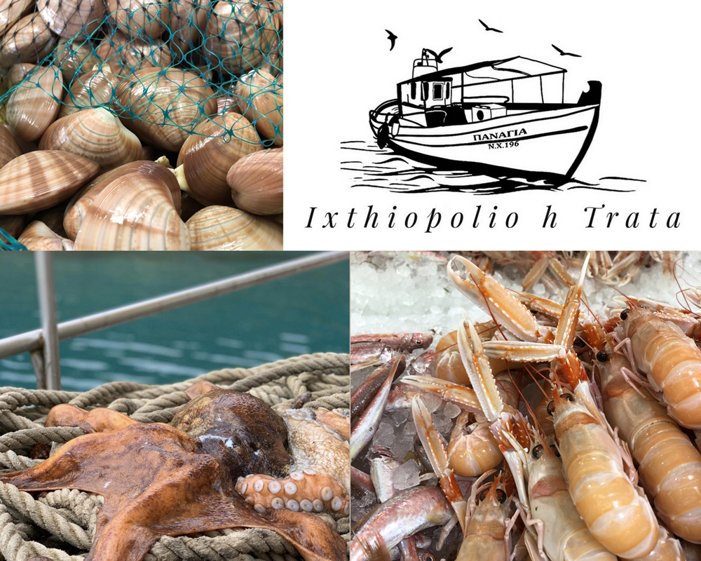Οστρακα και άλλα θαλασσινά που ...σπαρταράνε διαθέτει το ιχθυοπωλείο Η Τράτα στην Ερέτρια (διεύθυνση και τηλέφωνο εδώ.)
