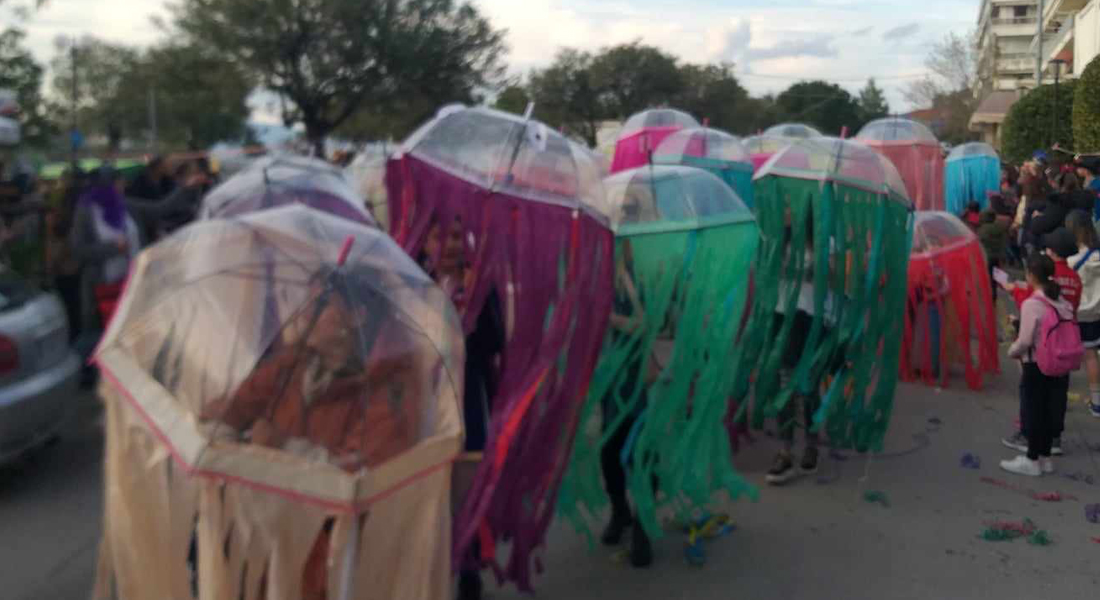 Τα τμήματα παρέλασαν από την Τζιαρντίνι μέχρι τη Φαρμακίδου υπό τους ήχους αποκριάτικης μουσικής χαρίζοντας καρναβαλική ατμόσφαιρα στην πόλη.