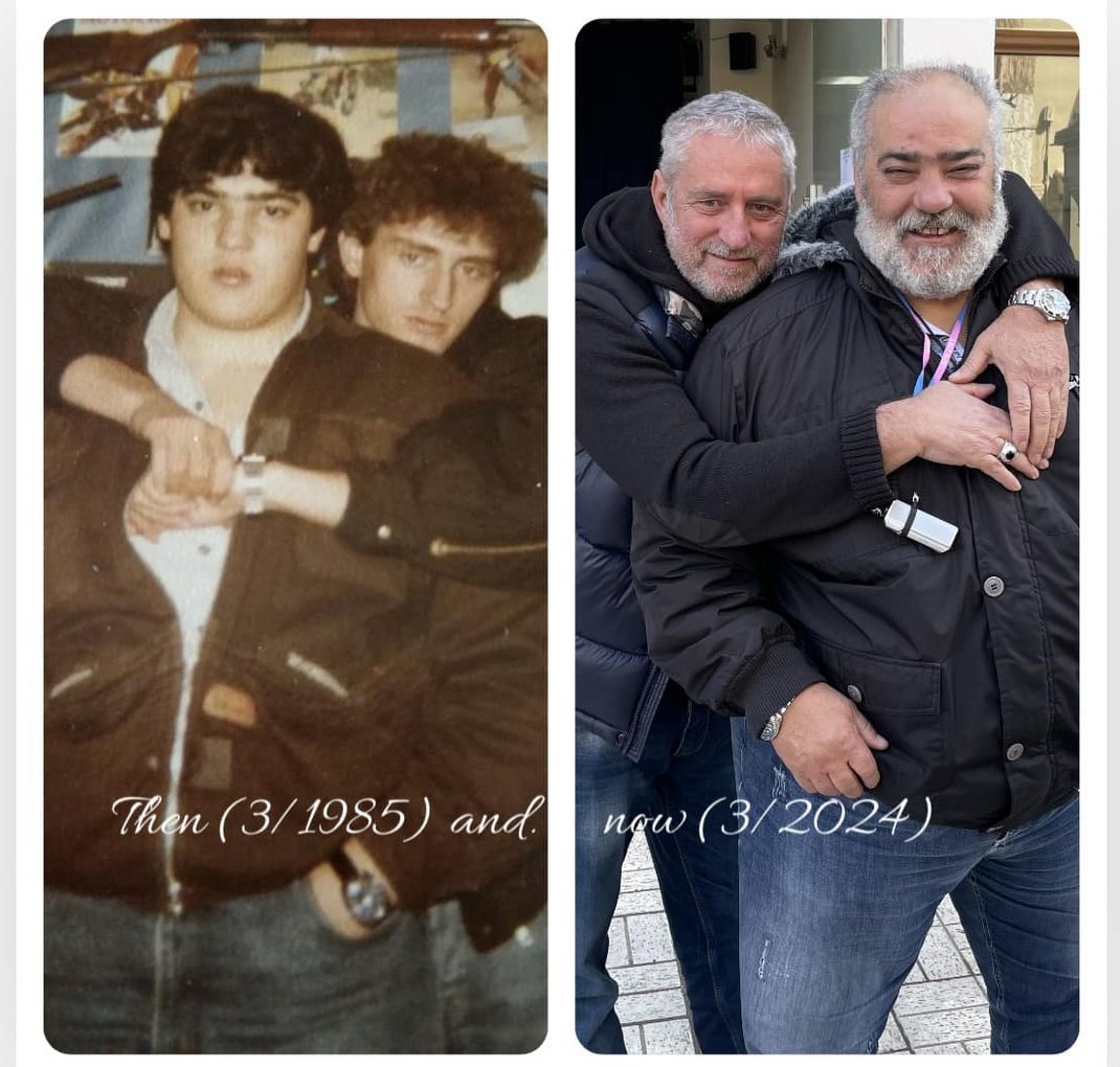 Η πρώτη φωτογραφία έχει ληφθεί τον Μάρτιο του 1985 στο Αστυνομικό Τμήμα Λίμνης, όπου υπηρετούσαν τότε και η δεύτερη τον Μάρτιο του 2024, μπροστά στο κτήριο της Διεύθυνσης Αστυνομίας Εύβοιας, όπου βρέθηκαν σε μία εκδήλωση.