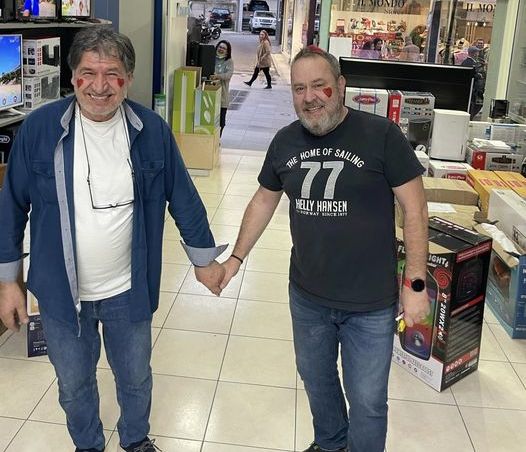 Δύο γνωστοί και παλιοί καταστηματάρχες της Αβάντων, ο Γιώργος Παλόγος και ο Μπάμπης Βραϊμάκης χάρισαν άφθονο γέλιο στους φίλους και πελάτες τους, τόσο δια ζώσης, όσο και στο διαδίκτυο.