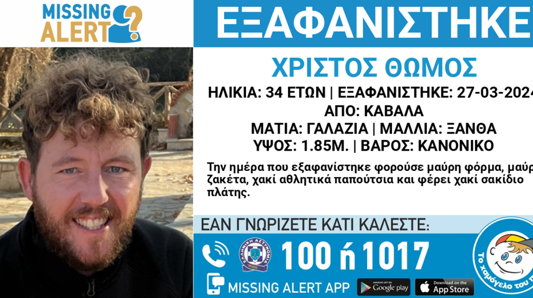 Σε θρίλερ εξελίσσεται η εξαφάνιση του 34χρονου Χρίστου Θώμου, τα ίχνη του οποίου χάθηκαν το μεσημέρι της Τετάρτης (27/3) από την Καβάλα, λίγη ώρα αφότου άφησε τα δίδυμα κοριτσάκια του στο σχολείο.