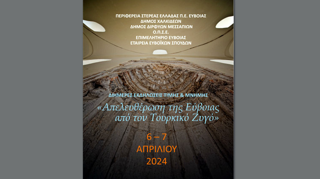 Η Ομοσπονδία Πολιτιστικών Συλλόγων Ευβοίας θα πραγματοποιήσει το Σάββατο 6 και τη Κυριακή 7 Απριλίου Διήμερες Τιμητικές Εκδηλώσεις Μνήμης για τον Εορτασμό της Απελευθέρωσης της Εύβοιας.