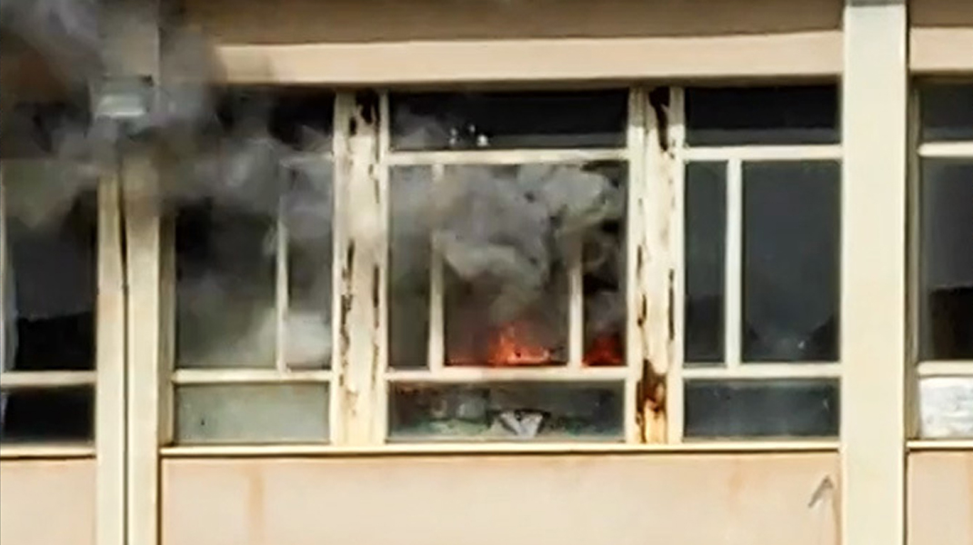 Το σχολικό συγκρότημα τυλίχθηκε στις φλόγες και μαύρος καπνός άρχισε να βγαίνει από τα παράθυρα.