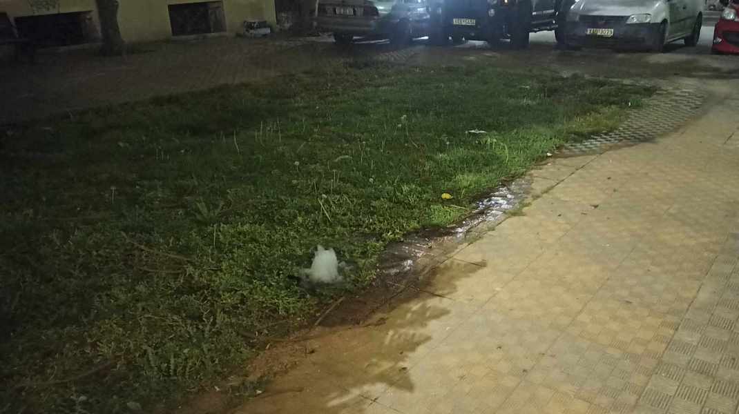 Το νερό έπεφτε ακατάπαυστα πάνω στο γκαζόν, είχε σπάσει και ένα από τα μπεκ του αυτόματου ποτίσματος και τα νερά, όπως μπορείτε να δείτε και στις φωτογραφίες έτρεχαν μέχρι την οδό Ιωαννίδου, για να καταλήξουν στο φρεάτιο αγωγού ομβρίων υδάτων.