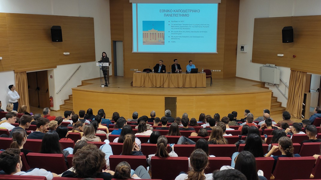 Στο βήμα ανέβηκαν ακόμα, φοιτητές και από τα 5 τμήματα που μίλησαν βιωματικά για την εμπειρία των σπουδών τους και απάντησαν στις ερωτήσεις των μαθητών.