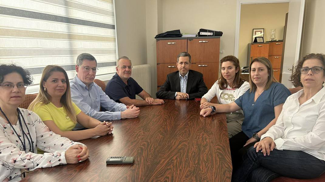Η φωτογραφία είναι από τη συνάντηση των βουλευτών Θανάση Ζεμπίλη και Συμεών Κεδίκογου με εργαστηριακούς γιατρούς στα γραφεία του Ιατρικού Συλλόγου Ευβοίας, στη Χαλκίδα:
