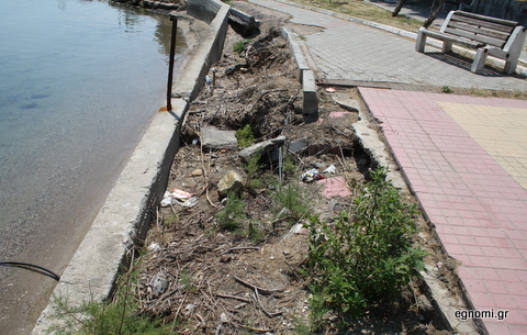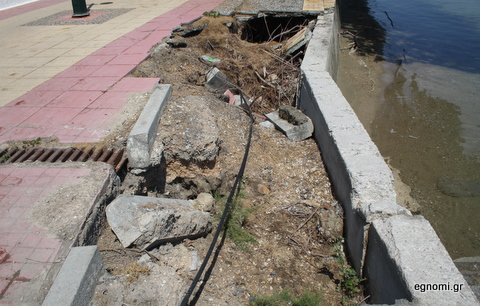 Αυτό το χάλι, που βλέπετε στις φωτογραφίες, παρουσιάζει ο παραλιακός δρόμος στο Δήλεσι Ιούλη μήνα, στο φουλ της τουριστικής περιόδου. Όπως διαπιστώνεται από τη φωτό δεξιά, οι πλάκες του πεζοδρομίου επικρέμονται απειλητικά πάνω από τα κεφάλια των λουόμενων, που θα τολμήσουν να κάνουν μπάνιο στην παραλία αποκάτω.