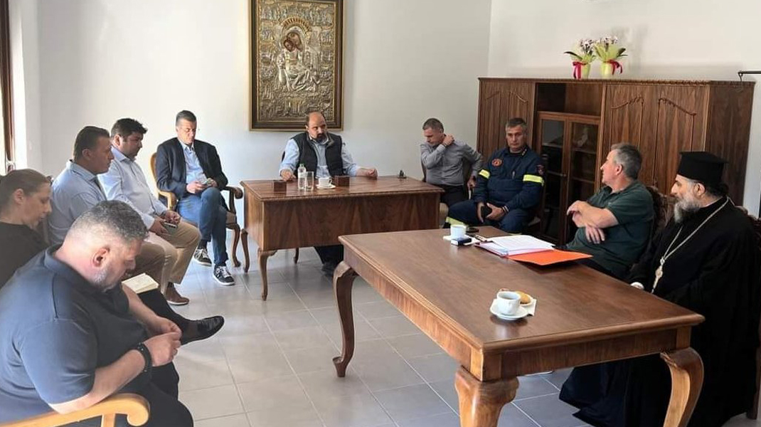 Κατά την επίσκεψή του στο Δήμο, μαζί με στελέχη του υπουργείου Κλιματικής Κρίσης και Πολιτικής Προστασίας.