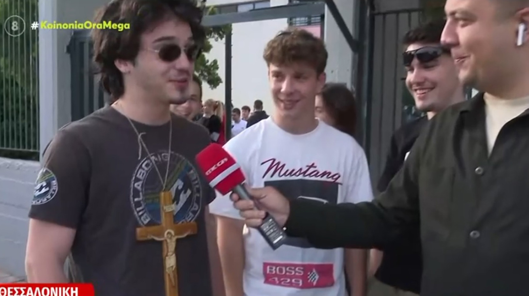 Με ένα μεγάλο σταυρό στο στήθος εμφανίστηκε μαθητής σε σχολείο της Θεσσαλονίκης, για να γράψει πανελλήνιες. Είναι δεδομένο ότι ήθελε να στρέψει πάνω του τα φλας και τις κάμερες και το κατάφερε, κάνοντας δηλώσεις στο MEGA.