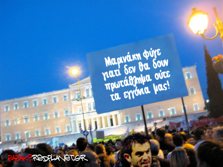 και ξανά τον Γιώργο Kαραγκούνη, αυτή τη φορά έξω από τη Bουλή, μαζί με τους Aγανακτισμένους