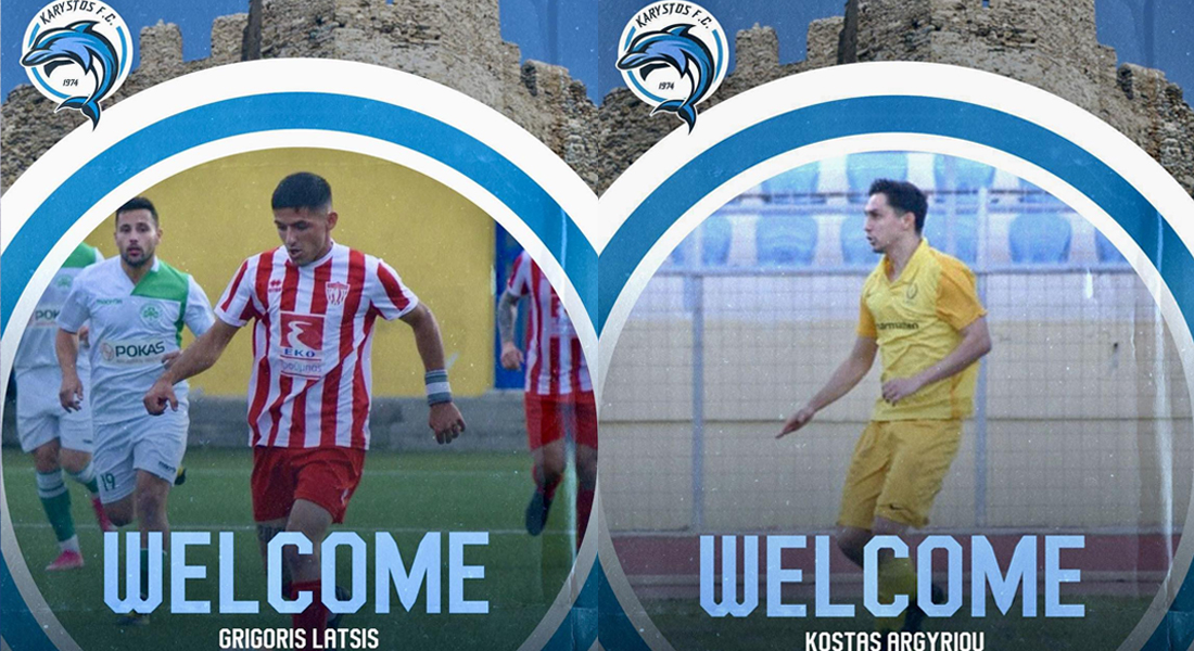 Διπλή ενίσχυση για τον ΑΟ Καρύστου, καθώς τα "δελφίνια" απέκτησαν τον γουίνγκερ Γρηγόρη Λάτση με πολύ καλά νούμερα την περ. σεζόν στο Λεωνίδιο (13 γκολ και 16 ασίστ λέει η ανακοίνωση!) και τον χαφ Κώστα Αργυρίου με παρουσίες στο παρελθόν σε ομάδες της Γ' Εθνικής.
