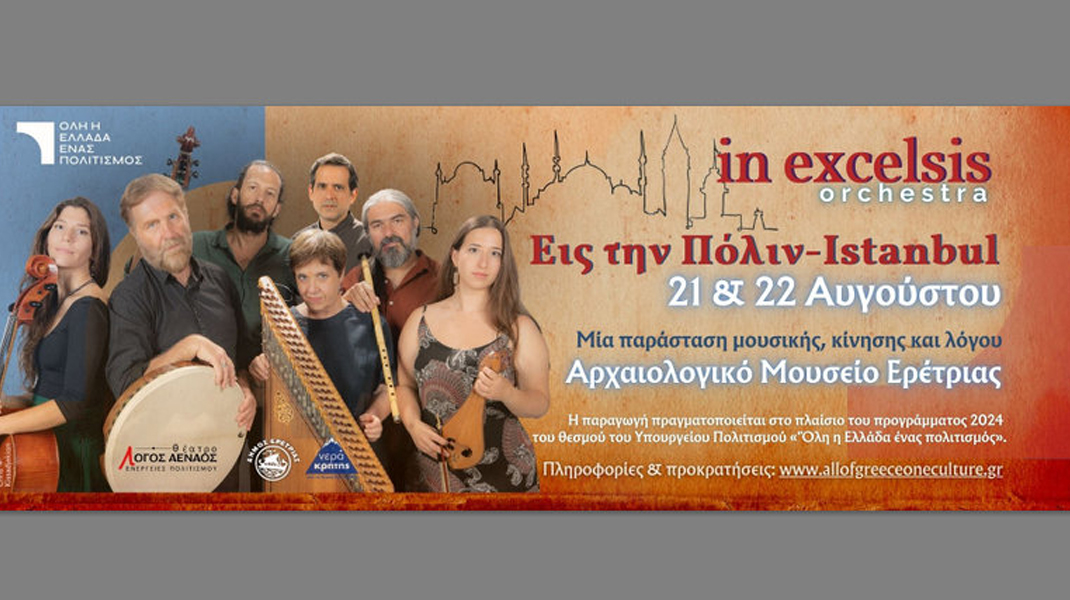 Η παράσταση έχει τίτλο " Εις την Πόλιν- Instabul και θα την παρουσιάσει η μουσική ομάδα in excelsis. Η εκδήλωση προσφέρεται δωρεάν από το Υπουργείο Πολιτισμού. H προκράτηση θέσης είναι υποχρεωτική. Πληροφορίες και προκρατήσεις: www.allofgreeceoneculture.gr