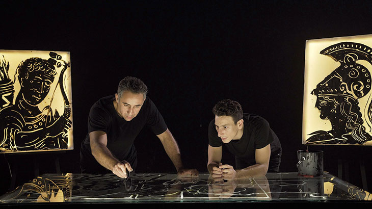 Οι εναλλαγές στη φωνή του και στα συναισθήματα, που απαιτούσαν οι ρόλοι, ήταν εκπληκτικές, έως ανατριχιαστικές. Ταυτόχρονα ο κάθε ήρωας έπαιρνε μορφή μέσα από τα μαγικά χέρια του Απόστολου Χαντζάρα, με το μοναδικό ταλέντο του στη ζωγραφική (όπως μάθαμε, τα έργα διατίθενται προς πώληση μετά από κάθε παράσταση).