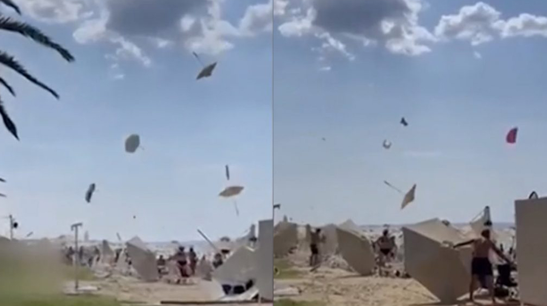 Κατά τη διάρκεια του φαινομένου, οι ομπρέλες εκτοξεύτηκαν στον αέρα και έγιναν ιπτάμενες.
