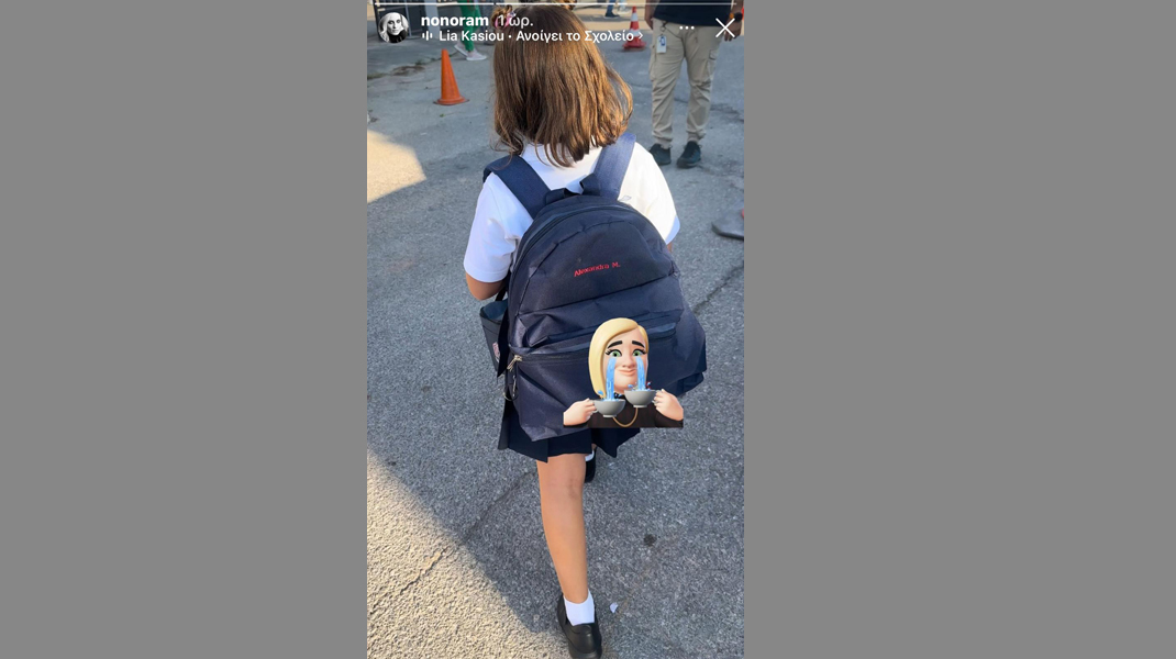 Αναλυτικότερα, στη φωτογραφία που δημοσίευσε η Ελεονώρα Μελέτη, βλέπουμε την μικρή Αλεξάνδρα να φοράει τη σχολική της τσάντα.