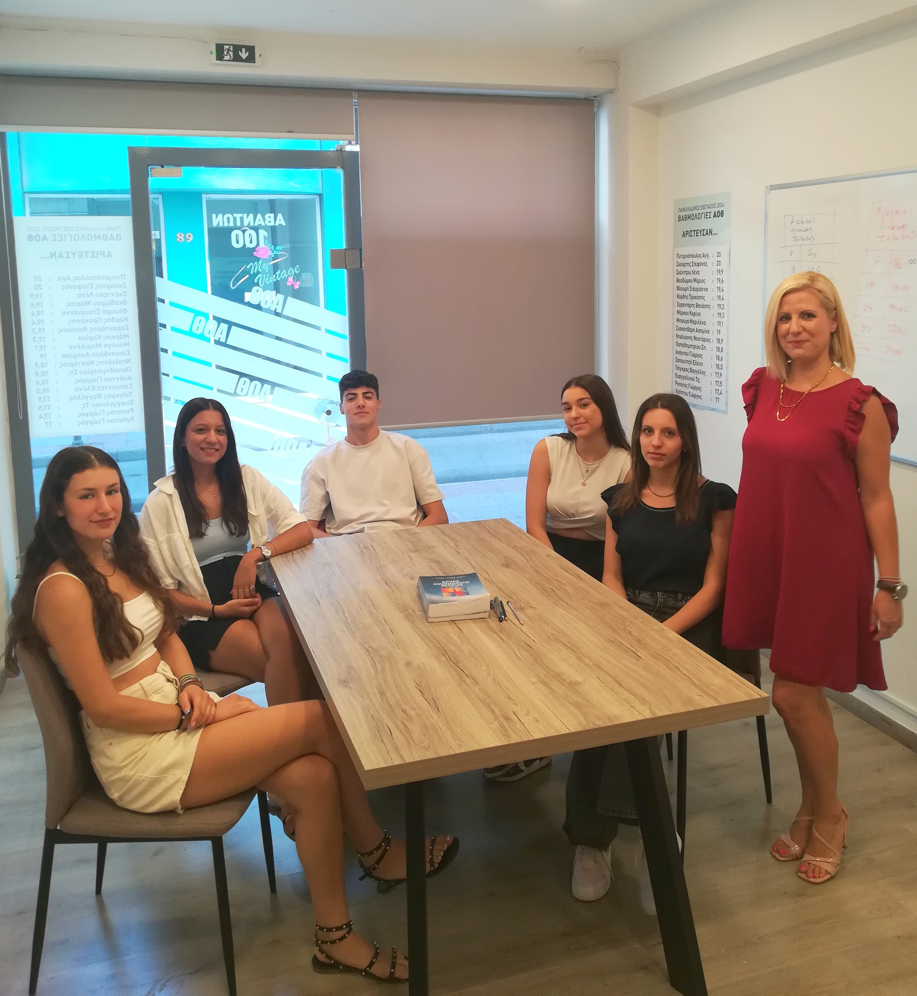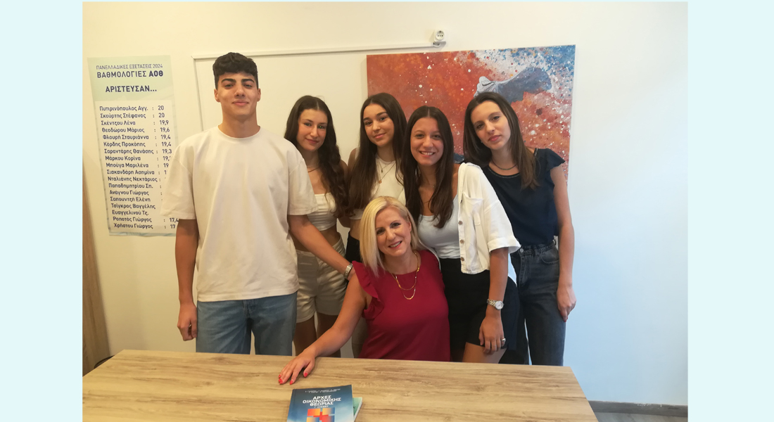 Η Ματίνα Ράζου στο οικοδιδασκαλείο μαζί με τους μαθητές που πέτυχαν στις πανελλήνιες εξετάσεις.