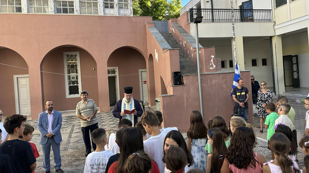 Τον αγιασμό τέλεσε ο π. Χαράλαμπος Ταραμίγκος, παρουσία του Αντιδημάρχου Παιδείας Κώστα Ζέρβα.