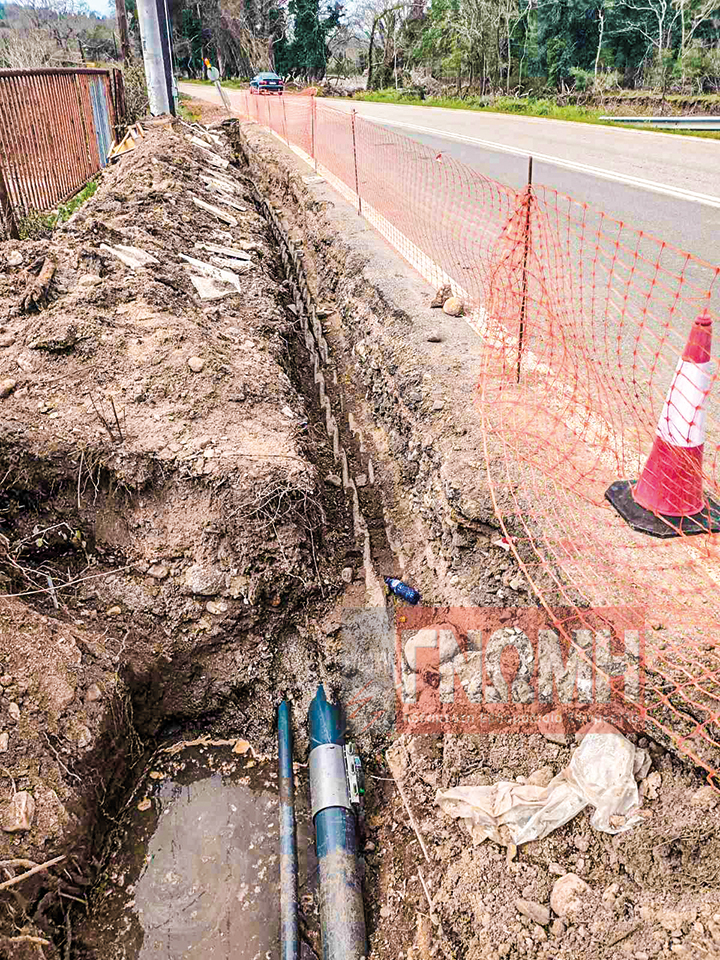 Το καλώδιο μέσης τάσης (μέσα στο χαντάκι) περνάει ακριβώς δίπλα από τον αγωγό ύδρευσης.