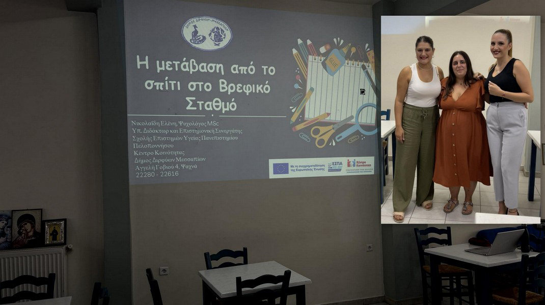 Tο Κέντρο Κοινότητας του Δήμου Διρφύων-Μεσσαπίων υλοποίησε, την Τετάρτη 18 Σεπτεμβρίου, ένα επιμορφωτικό βιωματικό σεμινάριο για τους γονείς του Δημοτικού Βρεφικού Σταθμού Ψαχνών με θέμα : «Η Μετάβαση από το Σπίτι στο Βρεφικό Σταθμό».