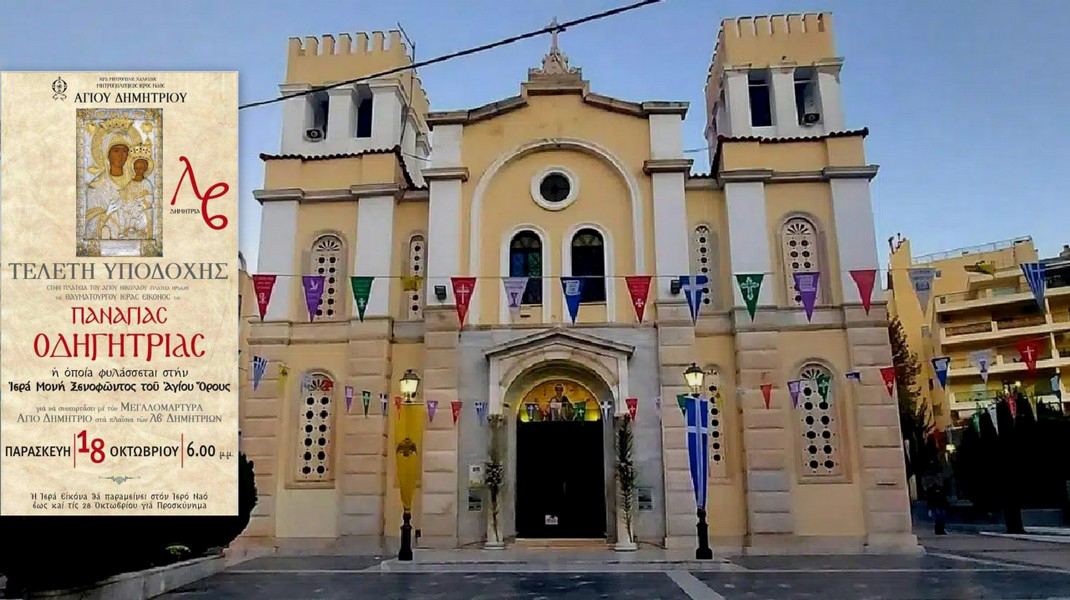 Όπως έχει καθιερωθεί εδώ και χρόνια, για τον εορτασμό των Δημητρίων, έρχεται στη Χαλκίδα μία θαυματουργή εικόνα της Παναγίας. Φέτος θα φιλοξενηθεί στον ναό του Αγίου Δημητρίου, σε όλο το διάστημα των Δημήτριων, η εικόνα της Παναγίας Οδηγήτριας, από την Ιερά Μονή Ξενοφώντος Αγίου Όρους.