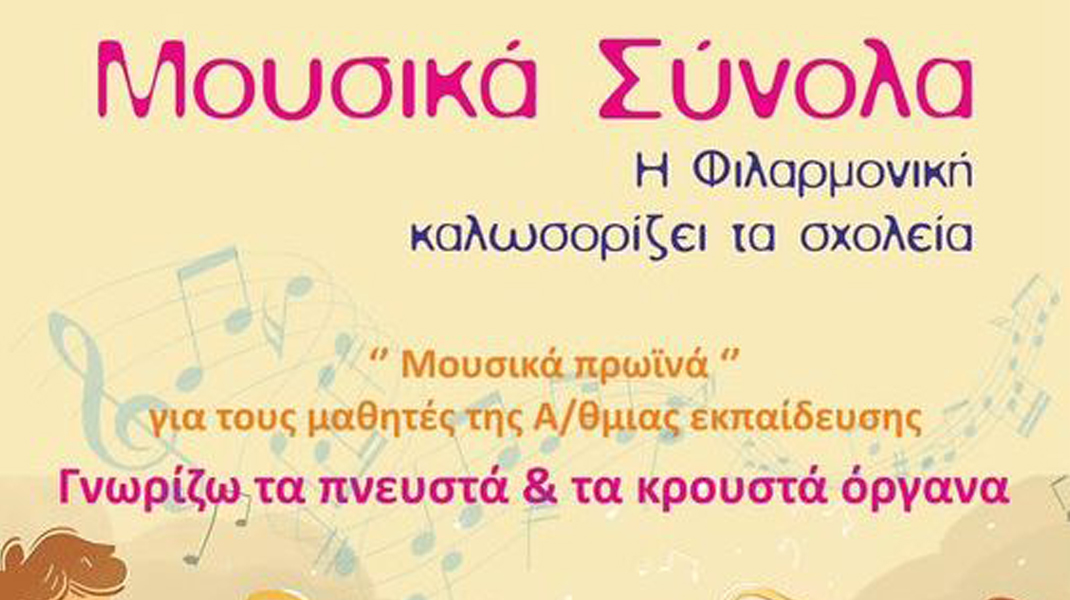 Μαθητές της Πρωτοβάθμιας Εκπαίδευσης έχουν τη δυνατότητα να παρακολουθήσουν από κοντά την πρόβα της Φιλαρμονικής, να γνωρίσουν τα ηχοχρώματα των πνευστών και κρουστών οργάνων, τον ρόλο και τον συνδυασμό τους μέσα στην ορχήστρα και να συμμετέχουν ενεργά στους μουσικούς διαλόγους.